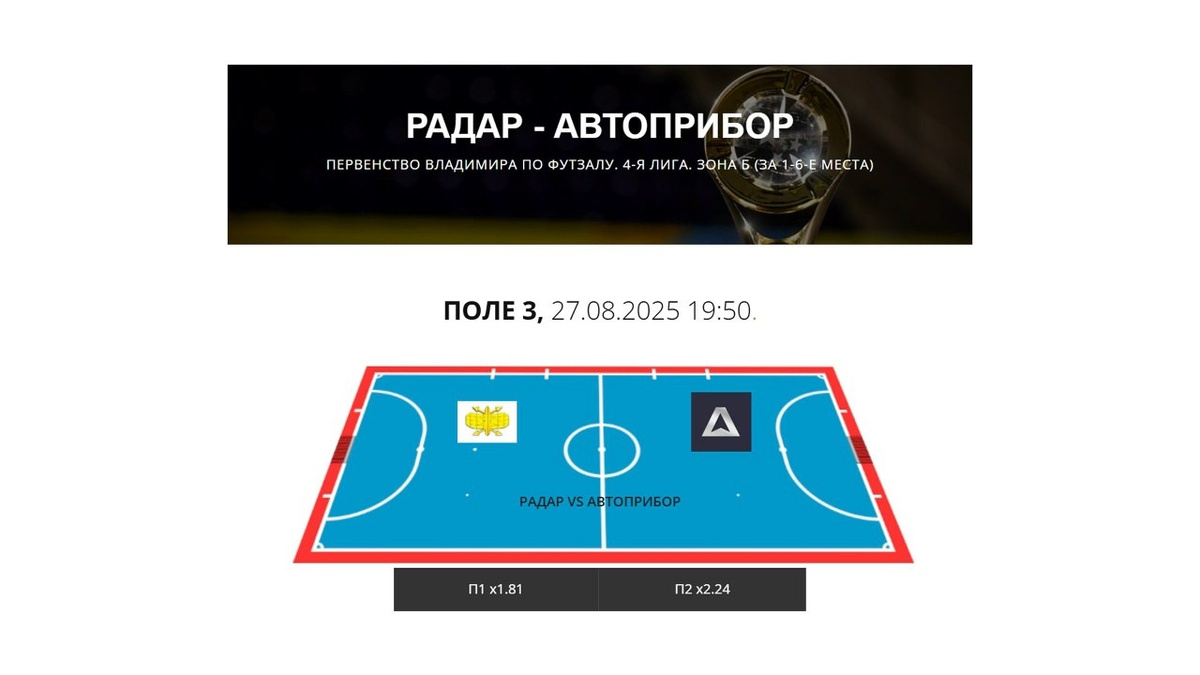 Первенство Владимира по футзалу. 4-я лига. Зона Б (за 1-6-е места) 27.08.2025 г. Радар - Автоприбор 2:6 (0:2) Обзор
