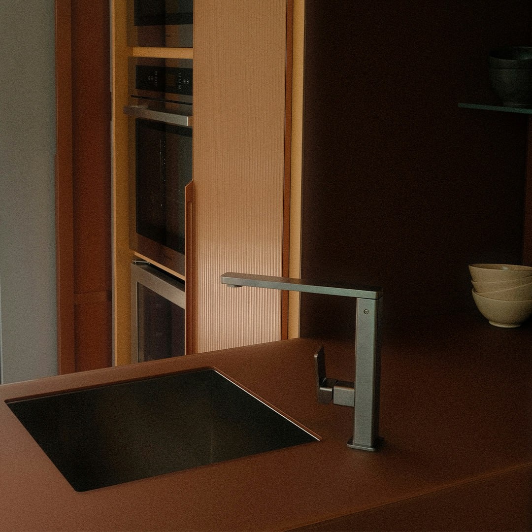✨ Визуальная магия и порядок. Мойка становится продолжением столешницы, а не отдельным элементом. Линии — идеальные, силуэты — безупречные. Кухня выглядит дорого и стильно, как в журнале.