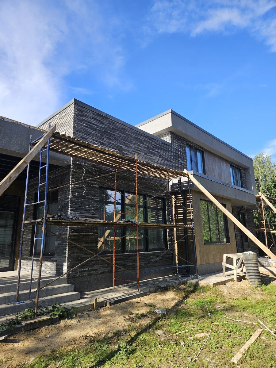 И сразу ещё: На нашем доме появляются Парапетные крышки! Специально сделали их массивными спереди для решения таких задач: 1. Закрыть прижимные шайбы 2. Защитить стык мембраны и отделки, чтобы вода не попадала и не портила отделку 3. Отвести воду подальше от фасада На крышках предусмотрены загибы, которые (если ветра нет) направляют воду капать сразу вниз мимо стены, а не стекать по внешней отделке. Чему научились - монтажники плоской кровли не равно крыша с парапетными крышками, фасадчиков кто умеет не только штукатурить - на вес золота. Сформировали для себя стандартный пирог для отделки парапетов, обкатаем этой зимой, будем делать в наших строениях 💪 все что делаем для Вас, всегда проходим через свой опыт