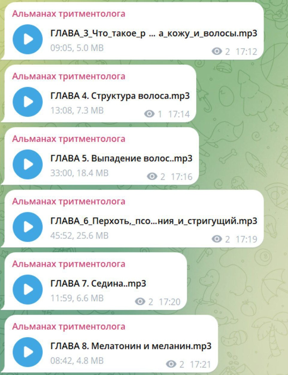 Книга "Альманах тритментолога" теперь в ТГ и в двух удобных форматах: текст и аудио. Доступ к ресурсу платный. Все подробности по ссылке: https://wa.me/message/5WCJBOELRBMRI1