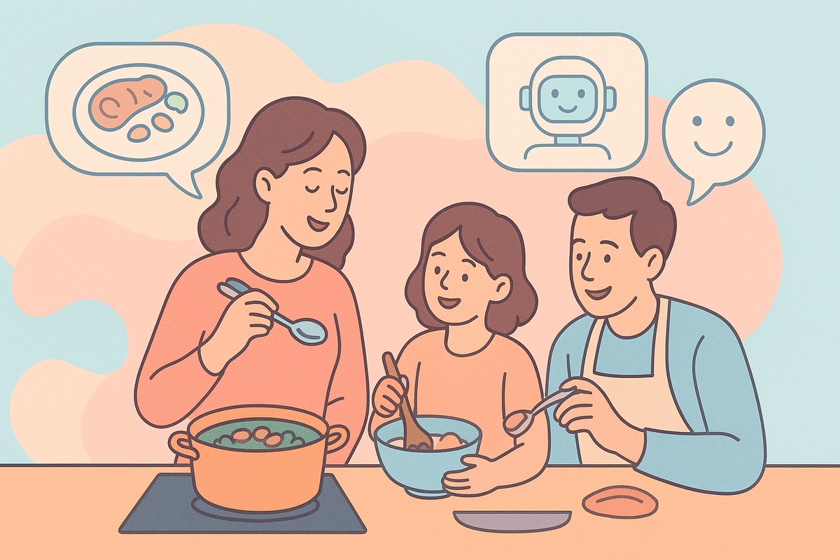 Когда ужин превращается в приключение. Я решила доверить выбор меню искусственному интеллекту. Он предложил блюда, которые я сама бы никогда не придумала. Мы всей семьей устроили кулинарный эксперимент, а результат оказался неожиданно похожим на ужин в хорошем ресторане. Что получилось, какие смешные комментарии звучали на кухне и главное - стоит ли доверять выбору ИИ? Мы привыкли, что ИИ помогает в работе: тексты, презентации, идеи для бизнеса. Но в тот вечер я решила проверить - а что если доверить ему самую бытовую задачу? Например, выбор ужина. Честно, я ожидала стандартных идей: паста, курица с гарниром, что-то из серии "быстро и просто". Но алгоритм удивил. Он выдал нам целое меню - с закуской, горячим и даже десертом. Причём блюда выглядели так, будто мы открыли кулинарную книгу модного ресторана. И тут включился азарт. Вместо того чтобы махнуть рукой и пойти жарить привычные котлеты, мы всей семьей решили: давай попробуем. Мой муж обожает готовить, поэтому он поддержал, дочка з