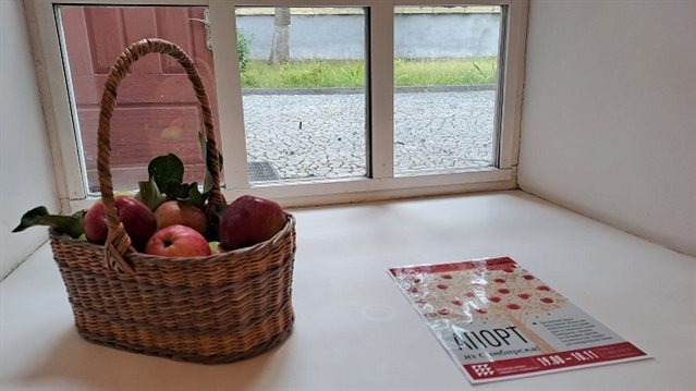 Гости выставочного проекта также смогут во дворе полюбоваться музейной яблоней. В этом году она особенно хороша, усыпана наливными яблочками. Её сотрудники музея посадили несколько лет назад, чтобы благоустроить свою территорию. А теперь она радует своим богатым урожаем.
