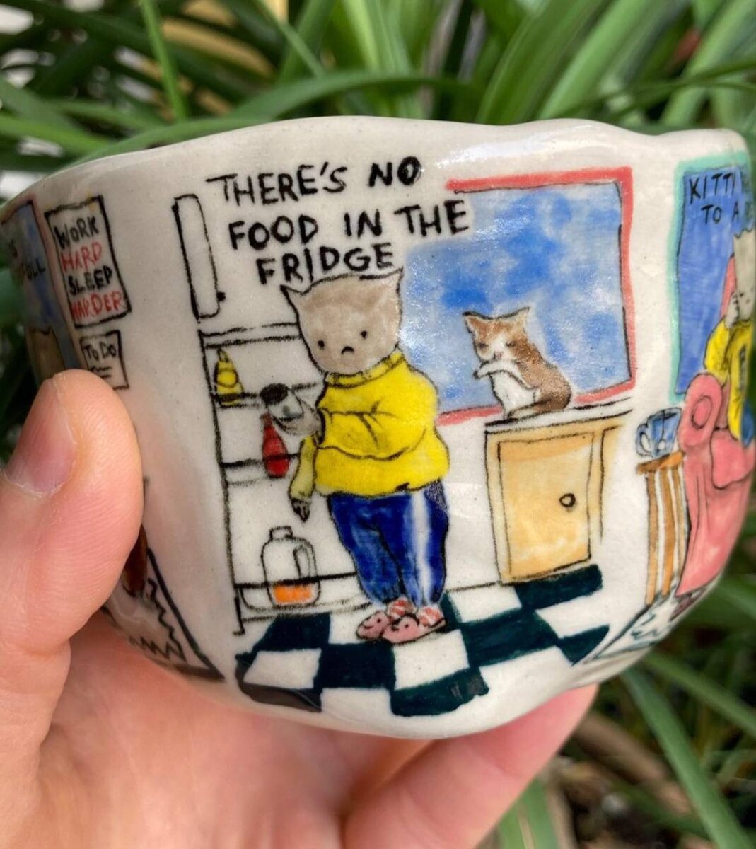 Приготовьтесь к взрыву милоты! Если вы любите котиков и цените искусство, то вам просто необходимо увидеть керамические кружки и пиалы с рисунками художницы Кати Акрайо. Эти очаровательные изделия с зарисовками из жизни кошек, сталкивающихся с повседневными проблемами, уже покорили сердца тысяч людей по всему миру. Готовы к порции мимимишного вдохновения?