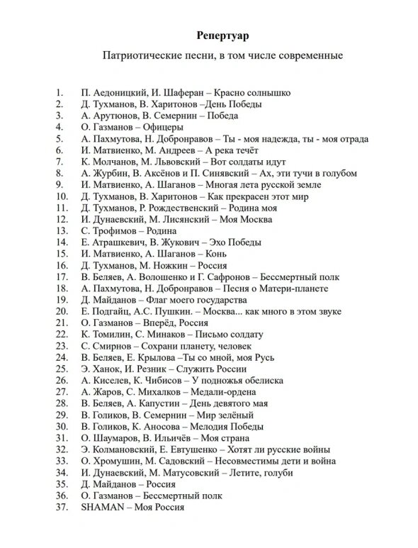 Песни российских исполнителей Ярослава Дронова (более известен под псевдонимом Shaman), Олега Газманова, Дениса Майданова и Трофима (Сергей Трофимов) включили в список патриотических композиций, рекомендованных для изучения в школах. Об этом сообщили в Минпросвещения. Перечень был направлен в регионы. - В список вошли 37 песен, направленных на патриотическое и духовно-нравственное воспитание обучающихся. Школы самостоятельно принимают решение об использовании рекомендованных произведений, — говорится в сообщении. Изучение этих композиций будет проводиться на уроках музыки. В перечне перечислены в том числе песни «Красно солнышко», «День Победы» и «Как прекрасен этот мир». Из современных рекомендованы «Моя Россия» (Shaman), «Офицеры», «Бессмертный полк» и «Вперед, Россия» (Олег Газманов), «Родина» (Сергей Трофимов) и «Россия» (Денис Майданов). Напомним, что ранее список рекомендованных для школы кинолент представил «Мосфильм». В него вошло более сотни российских фильмов. В том числе «Чу