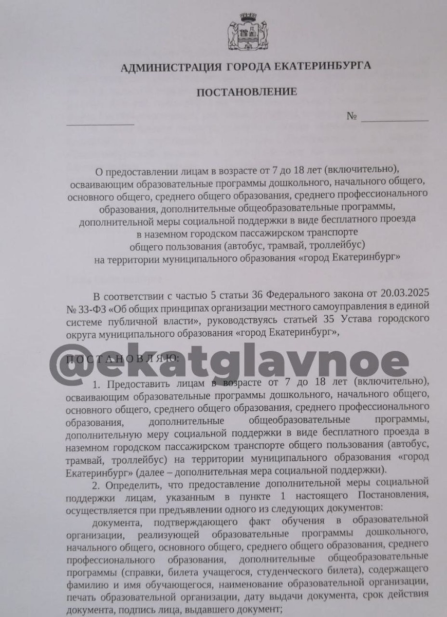 В ответ на пост Готово историческое постановление о бесплатном проезде в ОТ Екатеринбурга детей и подростков. В мэрии заявили, что оно будет подписано в ближайшие часы.