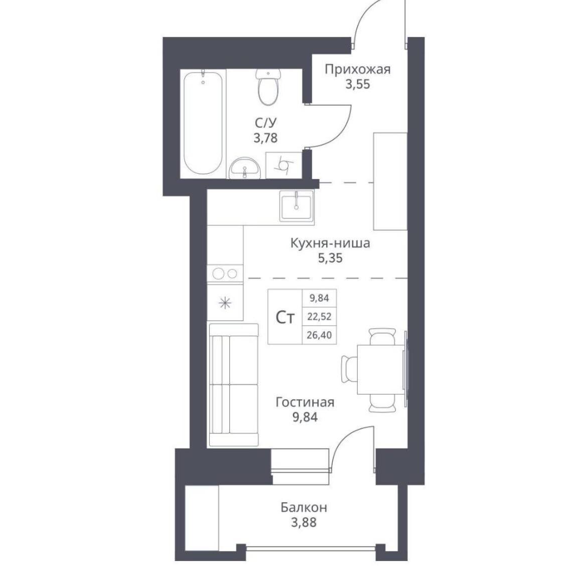 Студия в первым взносом 460 000 р