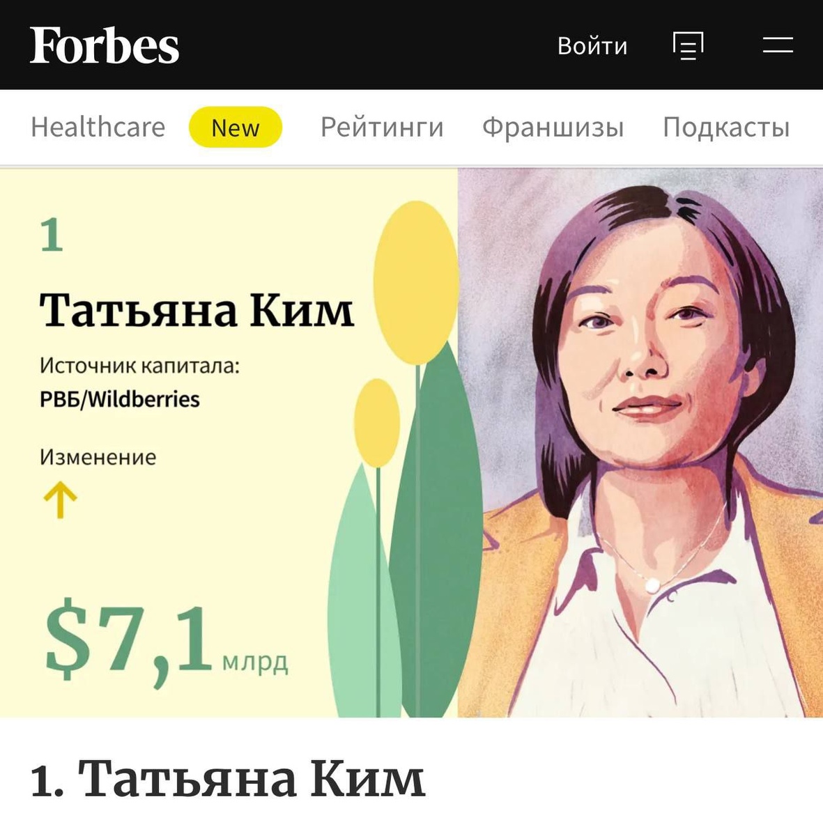 Татьяна Ким четвёртый год подряд остаётся самой богатой женщиной России с состоянием в $7,1 млрд. Американский Forbes включил её в топ-50 самых успешных self-made леди мира. Пока остальные считают копейки, она уже в другом лиге. https://dzen.ru/id/65d0bd2d3933641137a41b90 #богатство #Wildberries #Forbes #ЦиничныеФинансы 💸 Как думаешь, кто сможет составить ей конкуренцию?