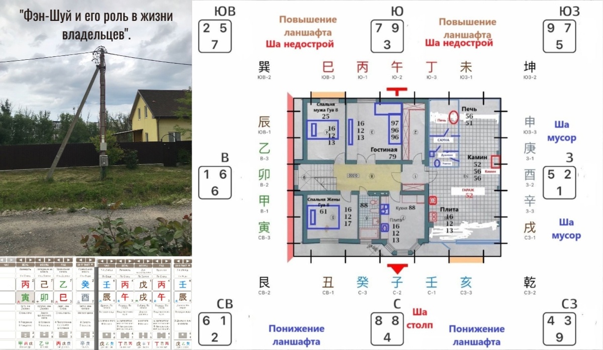 Пример из личной практики, отражающий связь Бацзы и энергический потенциал дома. Прекрасный, уютный частный дом , владельцы построили и живут с 2021 года. Планировка дома соответствует личным пожеланиям, ведь они сами все распланировали под свои нужды. Запросы самые популярные, увеличение финансовых поступлений и здоровье. Дом 8 периода, фасад Север 1, карта специальной формации «Двойные звезды на фасаде» 88, но есть условия, чтобы эта карта «включилась», поддержка внешними формами, водой и горой. А мы видим, на фасаде понижение ландшафта, соответственно «работает» только водная звезда 8, а горная 8 не поддерживает здоровье владельцев. С 2024 г, мы перешли в 9 период, второе важное условие для всех карт специальной формации – они «Работают» только в своем периоде. Как это происходит на практике, у владельцев была активна водная 8 на входной двери и в этом же направлении, комбинация въезд +дверь на территорию участка. Прекрасная цепочка комбинаций из водных 8, для 8 периода, когда звезд