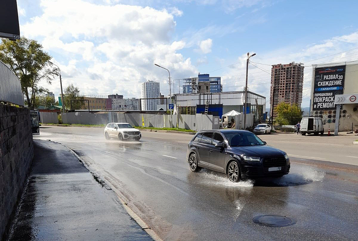 Проезжающим водителям ничего не остается, как грустно шутить: «Водоканал» нашел легкий способ охлаждать воздух в жару и заодно мыть асфальт. Вот только кому предъявлять счет за тысячи кубометров утекшей воды?