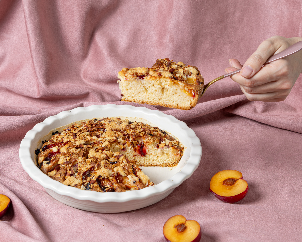 Садовая классика конца лета – нежный, чуть влажный пирог с сочными сливами, хрустящей крошкой и ореховым акцентом. Для теста: Для крошки: Режим: BAKE Температура: 170°C Время: 25 минут 1. Растопите сливочное масло, остудите. В глубокой миске венчиком взбейте яйца с обычным, коричневым и ванильным сахаром до легко пены. Влейте остывшее сливочное масло в яичную смесь, перемешайте венчиком. Добавьте сметану и снова размешайте до однородности. 2. Введите в основную массу муку и разрыхлитель, аккуратно вмешивая лопаткой. Орехи измельчите и используйте по вкусу – либо присыпьте сверху, либо вмешайте в само тесто. 3. Разогрейте Грандшеф на режиме «BAKE» до 170 °C. Форму для выпекания смажьте сливочным маслом и присыпьте мукой. Лишнюю муку стряхните. Аэрогриль Грандшеф - интеллектуальная система приготовления блюд, которая заменит: гриль, барбекю, су-вид, мультиварку, пароварку, фритюр и дегидратор на вашей кухне!
