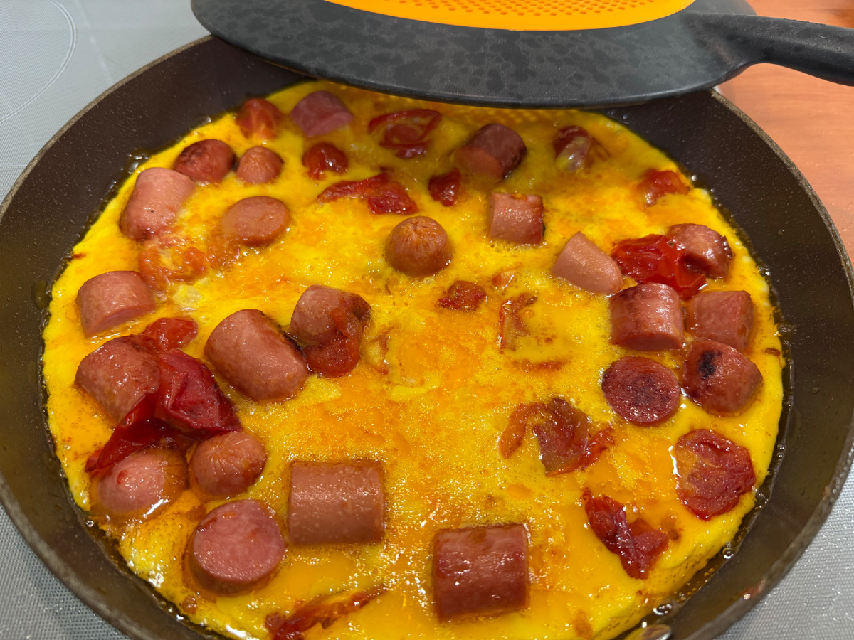 Вполне подойдет как на завтрак, так и на обед и на ужин. Основные ингредиенты: Дополнительно можно добавить лук репчатый, перец сладкий, колбасу, бекон и любую зелень. Кабачок, баклажаны тоже возможны. Прмидоры нарезаю довольно крупными кусочками и обжариваю на сковороде с растительным маслом. В процессе жарки можно добавить все дополнительные ингредиенты. Солю и перчу. Тем временем в миске разбалтываю яйца с молоком. Взбивать и вообще прилагать усилия стремясь сделать однородную массу не требуется. Вполне достаточно просто подружить все с помощью обычной вилки. Можно немного присолить. Яичную смесь выливаем на сковородку, убавляем огонь, закрываем крышкой и оставляем минут на пять. Мммм! Обожаю это блюдо! Но именно из настоящих - домашних, мясистых и ароматных помидоров. В магазинных, к сожалению, одна вода которую даже соком назвать сложно. Готовите такое блюдо? Кстати! Зимой можно и из замороженных помидоров приготовить)