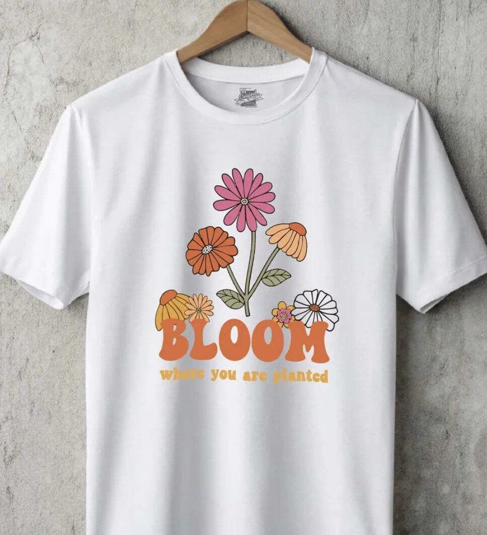 🌼 Футболка с вдохновением каждый день! Белая футболка с ярким цветочным принтом и надписью: “BLOOM where you are planted” (Цвети там, где посажен). Нежные розовые, оранжевые и белые цветы создают атмосферу уюта и радости, а мотивационный текст добавляет позитивного настроя. 🌸 Идеально подходит для прогулок, учебы или повседневного образа, сочетаясь с джинсами, юбками и шортами. 📦 Заказать на Wildberries по ссылке: 👉 перейти к футболке