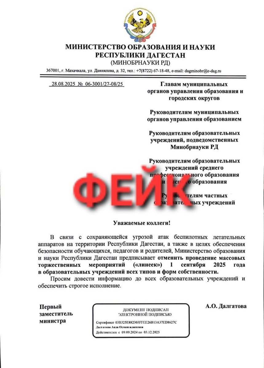 ⚠️ВАЖНО! В связи с распространяемой в сети Интернет информацией об отмене проведения линеек 1 сентября, Минобрнауки РД сообщает