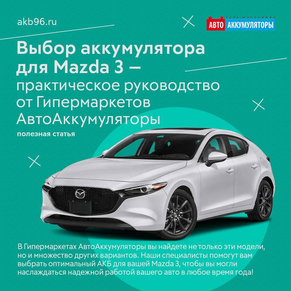 • Свинцово‐кислотный стартерный: бюджетный вариант, подходит для большинства Mazda 3.