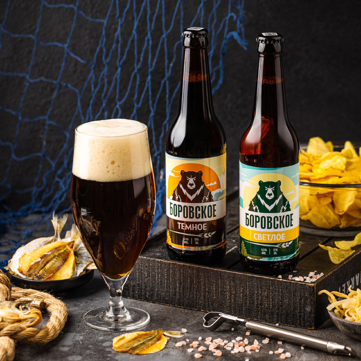 Два сорта, два характера, которые точно знают, чем порадовать настоящего ценителя! «Боровское Светлое» (OG - 12%, ABV - 4,5%; пиво непастеризованное светлое);