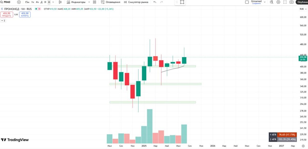 💊 Промомед. Агрессивный рост Выручка: 12,97 млрд руб. (+82% г/г) Скоррект. EBITDA: 4,36 млрд руб. (+91% г/г) Скоррект. чистая прибыль: 1,41 млрд руб. (+106% г/г) Промомед радует своим отчетом и вновь опережает фарм рынок РФ. Причем более чем в 5 раз: при выручке 82% рост общего рынка около 15%. За счет чего компания так стремительно растет? 🔸 Запуск новых препаратов Ключевого портфеля: +31% г/г. Главные драйверы — новые препараты в Эндокринологии и Онкологии. 🔸Продажи Базового портфеля: +25% г/г. 🔸Продукты-локомотивы: Стимулятор репарации тканей «Амбене Био»: рост продаж в 16 раз. Антикоагулянт «Ривароксабан»: рост продаж в 3 раза. Текущие показатели позволяют Промомеду активно инвестировать. Финансовые расходы выросли на 114% (до 2,2 млрд руб.), что связано с увеличением кредитного портфеля для финансирования R&D (исследований и разработок) и общей высокой стоимостью заемного финансирования. Но долговая нагрузка все еще приемлема. Коэффициент чистый долг/EBITDA 2.0x. Опять же