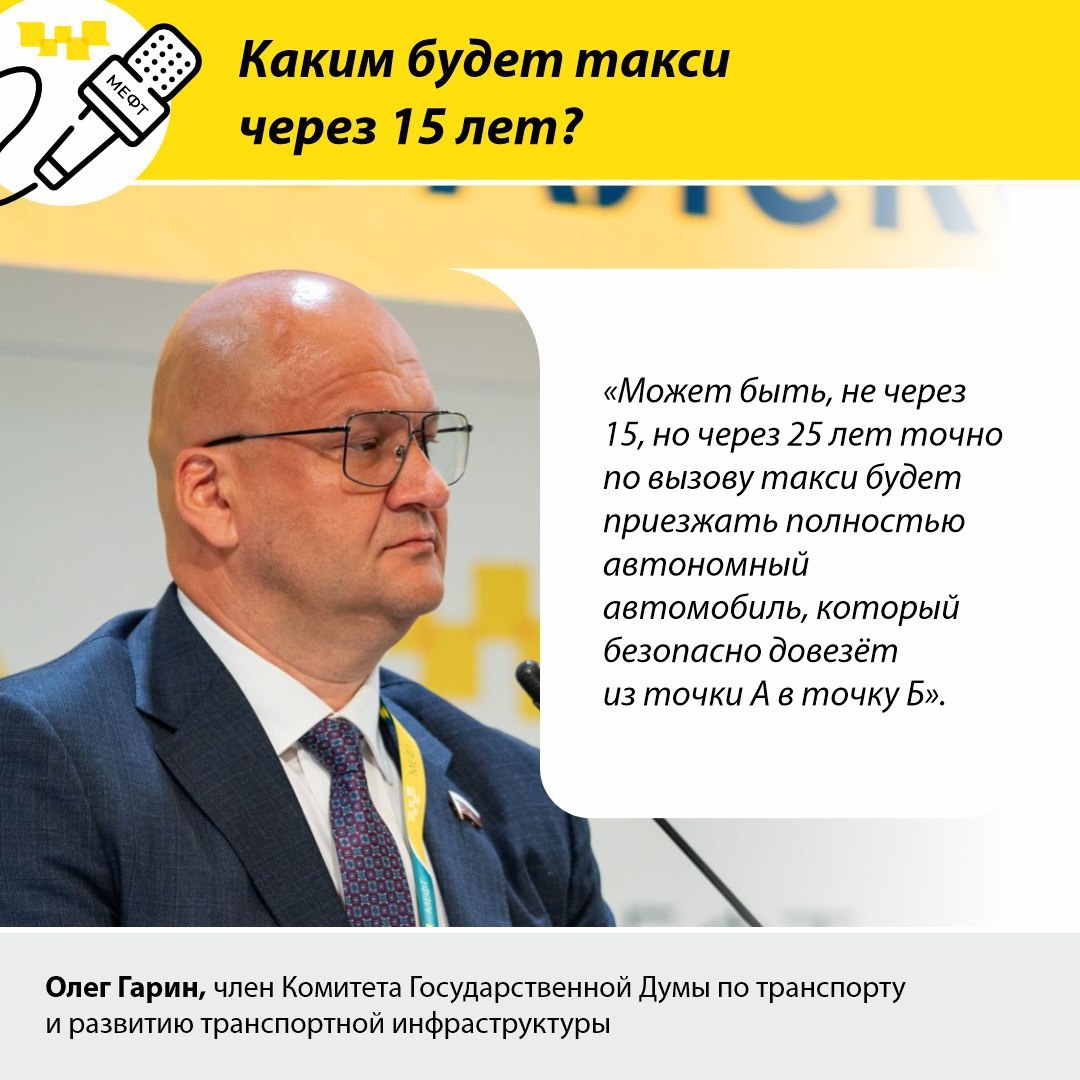 ❓Каким будет такси через 15 лет? 🔍 На этот вопрос отвечали спикеры Пленарного заседания: 🔴 Олег Гарин — член Комитета Государственной Думы по транспорту и развитию транспортной инфраструктуры 🔴 Алексей Катяев — начальник Межрегиональной инспекции ФНС России по крупнейшим налогоплательщикам №7 🔴 Сергей Лисовский — заместитель Председателя Комитета Государственной Думы по защите конкуренции 🔴 Владимир Макаров — заместитель руководителя Департамента транспорта и развития дорожно-транспортной инфраструктуры города Москвы 🔴 Ольга Шанаева — заместитель руководителя Роскачества ✨Точку зрения каждого спикера мы отразили на карточках к посту✨ #Высокий Спрос #Новости_Высокий Спрос Ваш таксопарк: «Высокий спрос» 🚕 89697774262 📲 Комиссия от 1% 💰 (Подключаем ко всем фирмам такси и доставки) 🚗📦 #такси #водитель #курьер