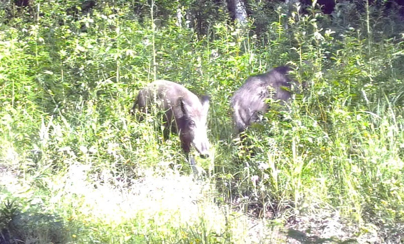 Нервный кабан и полуобморочный заяц попались в фотоловушку в костромском лесу