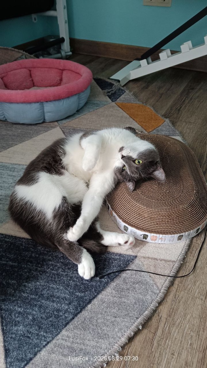 #шубаджо #гостинцы -Шуня! Ты неправильно когтедралку носишь. Это кроватка -когтедралка. -Нет это мой трон, ну и подушечка тоже. Гости привезли нам подарки и гостинцы, вкусные, милые и полезные. Но Андрей почему-то решил, что эта когтедралка-холмиком, типа так удобнее. Девочки по очереди на нее забирались и гордо возлежали в позе буханочки. Утром Шуня крутила на ней свои пируэты. Пока я не перевернула когтедралку. -Что ж, так тоже можно - согласилась Шушунька. Мячики с бубенчиками мы им на ночь не давали, выдали новую мышь и пластиковую пружинку. Бася мышку куда-то сразу припрятала "поиграть на потом". А пружинку Шуня долго гоняла. Подарочки для человеков она тщательно обследовала, обиделась, что я отобрала у нее брошечку-кошечку. -Злые вы! Не дали мне такую славную игрушечку погонять. В общем, все как всегда, одно слово- девчонки😂😻 С гостями мы увидимся ближе к обеду, а пока надо быстро-быстро переделать кучу домашних дел 😊