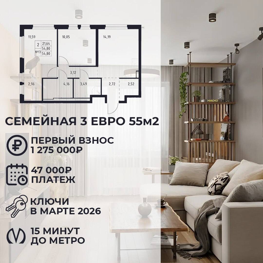 Не нужно годами ждать сдачи дома или тратить миллионы на отделку. Семейная 3 евро квартира 55 м² за 8,5 млн с ремонтом и ключами уже в марте 2026! ⚡️ВЫГОДНАЯ РАССРОЧКА: Первый взнос всего 15% (1 275 000р) - зафиксируй цену сегодня, пока они не взлетели. Оплата всего 47 000 р. в месяц на 3 года - это в 2 раза дешевле аренды похожей квартиры. Остаток - можно перевести в ипотеку (семейная ипотека 3.5% на весь срок - это лучшая ставка на рынке). Что ждет Вас в доме: • 15 минут до метро • Зеленые дворы без машин - дети гуляют в безопасности, • 2 школы и 5 детских садов на территории - всё в шаговой доступности, • 2 парка, 3 бульвара и термальный комплекс рядом - семейный досуг обеспечен, • Свой медицинский центр - не нужно никуда ехать. Это не просто квартира, а готовое жилье для вашей семьи, без ожидания. Зафиксируй стоимость СЕГОДНЯ! Как это сделать? Поставь "🤩" в реакции к посту, я свяжусь с тобой и отправлю презентацию ЖК