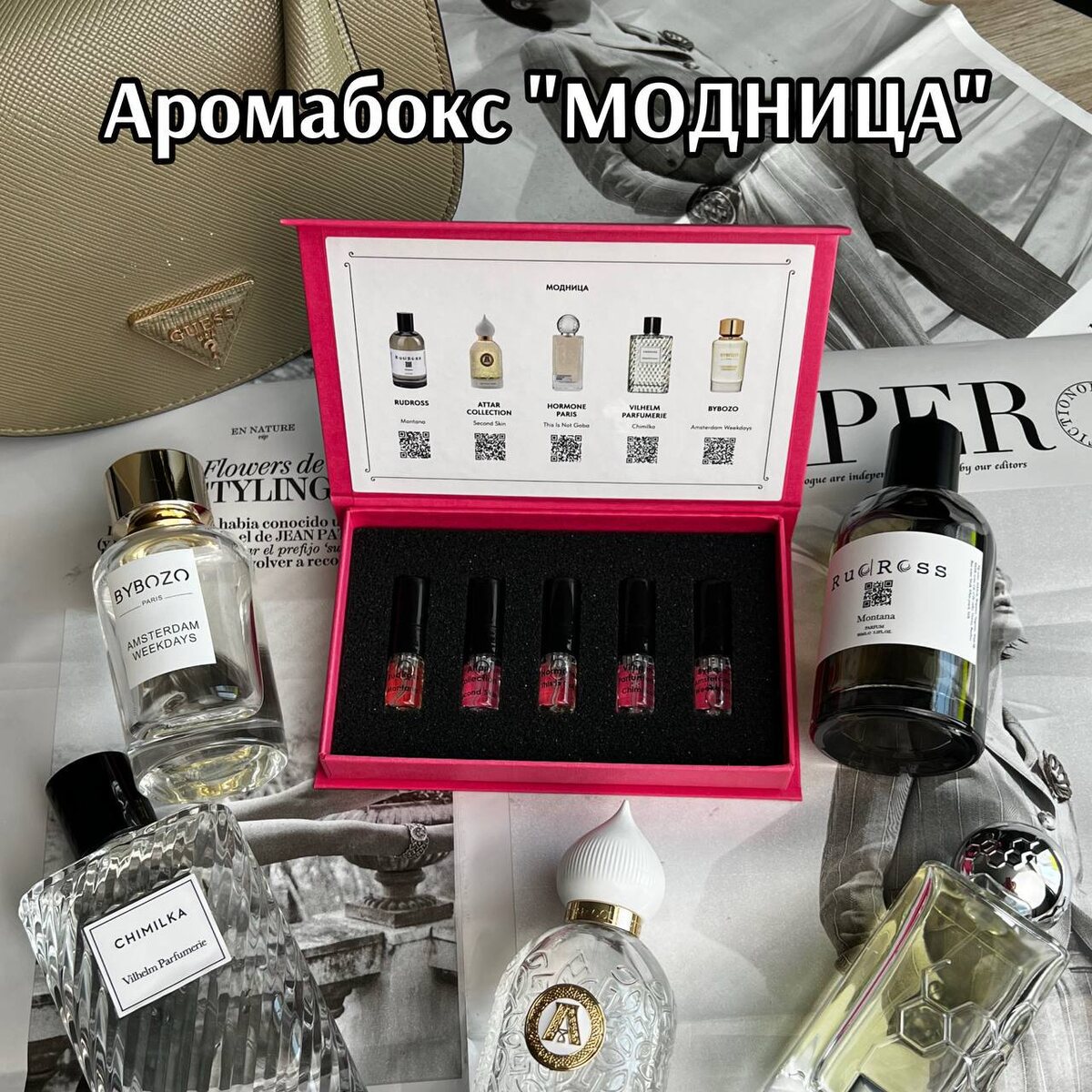 В «Одеколон» всегда знают, чего хотят клиенты. Именно поэтому на полках появились два новых аромабокса, и уже первые дни показали — они стали настоящими хитами! Для женщин, которые умеют создавать настроение ароматом. В наборе собраны пять изысканных парфюмов, каждый из которых звучит как стильный аксессуар, только лучше. — Hormone Paris This Is Not Gaba — гармония цитрусов, лаванды и жасмина, завершающаяся мягким мускусным облаком. — Vilhelm Parfumerie Chimilka — бархатная смесь персика, шафрана и османтуса в обрамлении амбры и мускуса. — ByBozo Amsterdam Weekdays — свежесть утра и лёгкость дня с нотами лилии, пиона и чистого мускуса. — RudRoss Montana — глоток горного воздуха: нектарин, ландыш и ваниль в сияющем шлейфе. — Attar Collection Second Skin — вуаль из горького апельсина, цветов и мускуса, словно вторая кожа. Этот бокс — для тех, кто любит меняться: утро — лёгкость, вечер — элегантность. Мужчины, приготовьтесь: этот набор создан для тех, кто выбирает статус и стиль. Здесь со