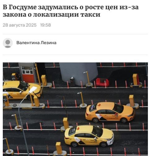 🔺🇷🇺 В Госдуме обсуждают возможный пересмотр закона о локализации такси, так как новые требования с 2026 года могут поднять тарифы на