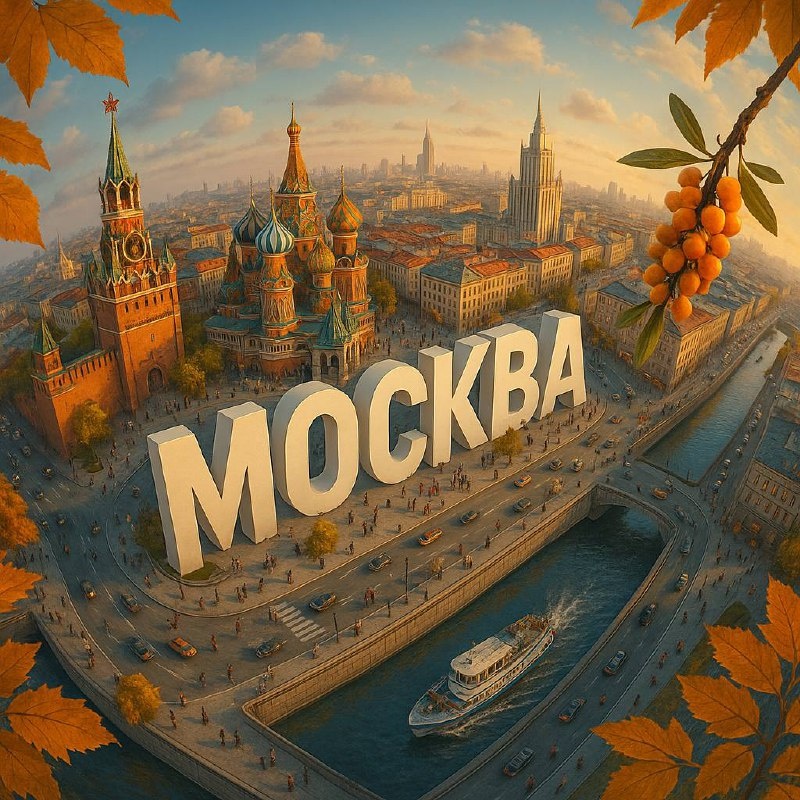 Креатив для городов: Промптецкий : Создай гиперреалистичный постер, изображающий сферическую 3D-панораму ПИШЕМ ГОРОД с её знаковыми достопримечательностями в ярких деталях. (ТУТ МОЖНО ПЕРЕЧИСЛИТЬ ЗНАКОВЫЕ МЕСТА ГОРОДА) Сцена должна включать стильный белый 3D-текст «НАЗВАНИЕ ГОРОДА», органично встроенный в городской ландшафт, как часть окружающей архитектуры. Панорама должна передавать динамичный, оживлённый городской (ТУТ МОЖНО НАПИСАТЬ ВРЕМЯ ГОДА: ВЕСЕННИЙ / ОСЕННИЙ / ЛЕТНИЙ / ЗИМНИЙ) пейзаж: прохожие на улицах, движущиеся автомобили, речные катера скользящие по воде (ЕСЛИ ЕСТЬ РЕКИ В ГОРОДЕ), огни, мерцающие в окнах зданий и на улицах. Вид сверху, с большой высоты, как будто снято дроном. Используй мягкое освещение «золотого часа» для придания глубины и тепла, а немного пасмурное небо с белыми облаками создаст уют. Фон плавно переходит в лёгкую дымку горизонте, создавая ощущение бесконечного масштаба города. Цветовая палитра — насыщенная и яркая: глубокие синие оттенки, тёплые ор