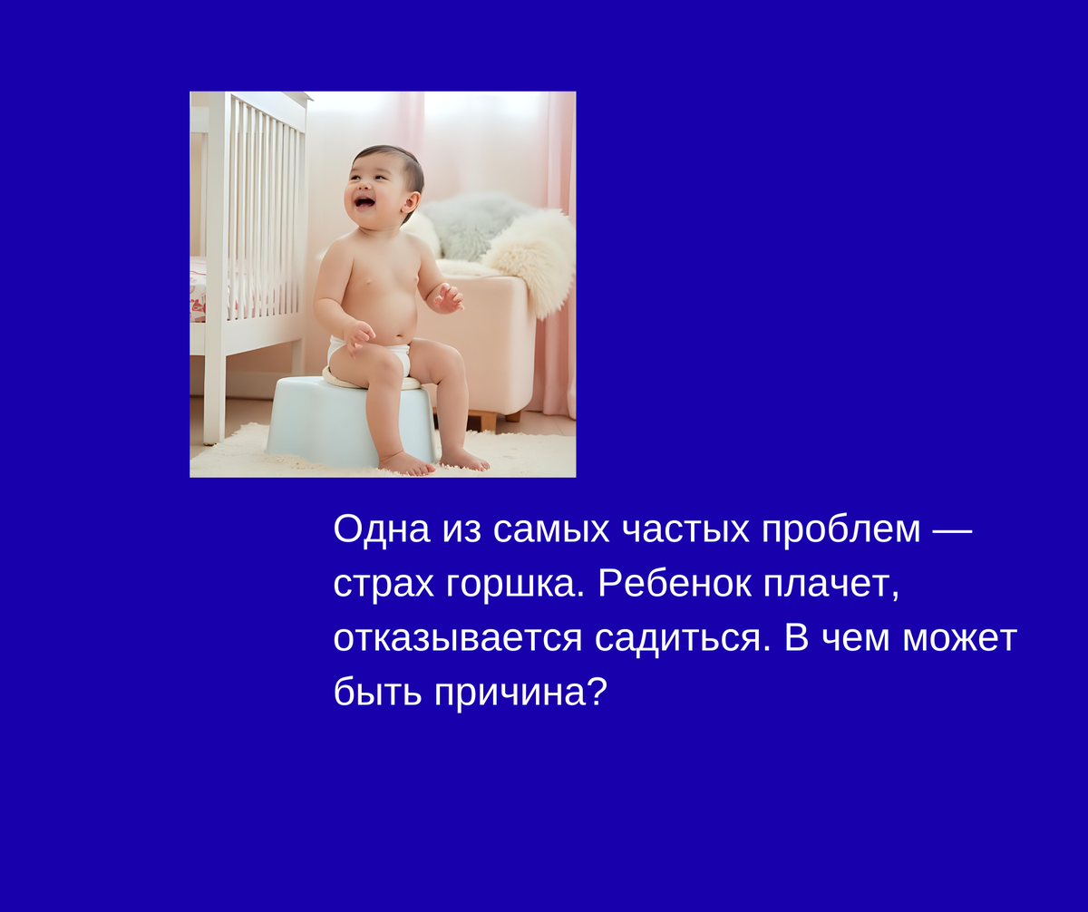Одна из самых частых проблем — страх горшка. Ребенок плачет, отказывается садиться. В чем может быть причина?