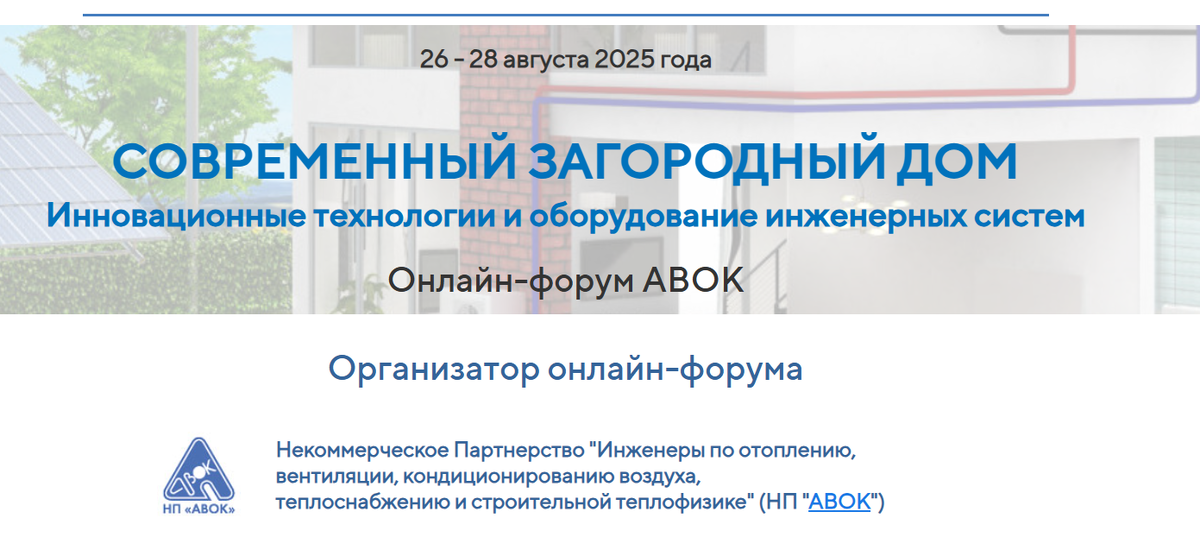 С 26 по 28 августа 2025 проходил онлайн-форум "Современный загородный дом. Инновационные технологии и оборудование инженерных систем".
