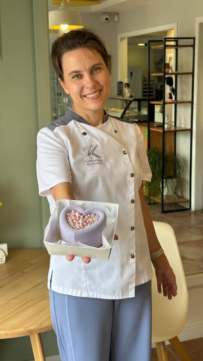 Привет, на связи Александра Филатенко, шеф школы «Буду кондитером». Меня часто спрашивают: «Саша, почему ты не делаешь торты больше 1 килограмма?» А я отвечаю честно: я вообще не делаю торты на килограммы. Сейчас мой формат — это бенто-торты и мелкоштучные десерты. Хочу рассказать, почему я пришла именно к такому решению. Время, нервы и удовольствие от работы Когда я делала заказные торты, доход был отличный — около 100–120 тысяч в месяц. В день у меня уходило по 5–6 тортов. Тогда это было нормально, я справлялась и радовалась результатам🤗 Но у больших тортов есть нюанс: они требуют очень много времени. 📝 Нужно обсудить с заказчиком все детали: начинку, декор, бусинки, медвежонка, ягоды, бортик из шоколада. 😵💫 Потом воплотить все эти пожелания, сидеть до ночи, а после ещё переживать, доедет ли торт в целости и сохранности. В какой-то момент я поняла: я не могу разрываться на всё и сразу. Либо я ставлю ставку на заказные торты, либо выбираю направление, которое действительно даёт с