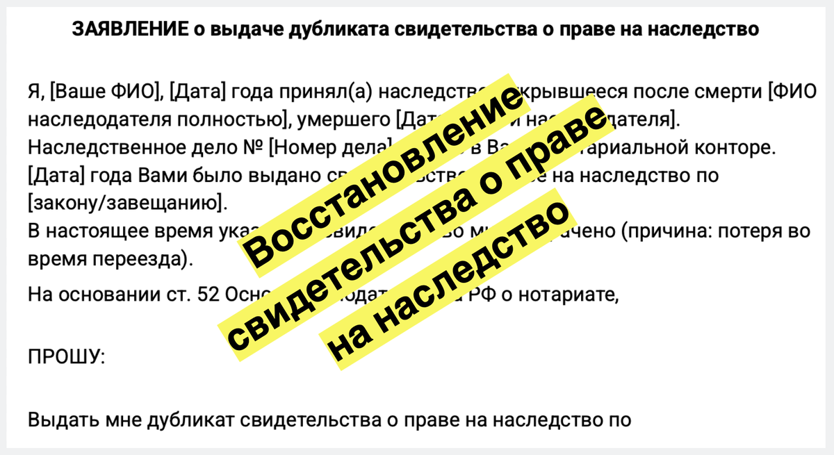 - Суть просьбы: выдать дубликат свидетельства о праве на наследство.
