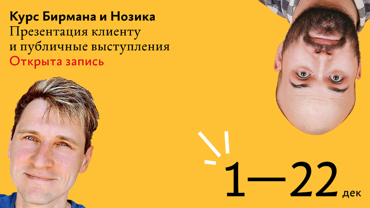 Открыта запись на курс Ильи Бирмана и Михаила Нозика «Презентация клиенту и публичные выступления» с 1 по 22 дек — сэкономьте до 30%