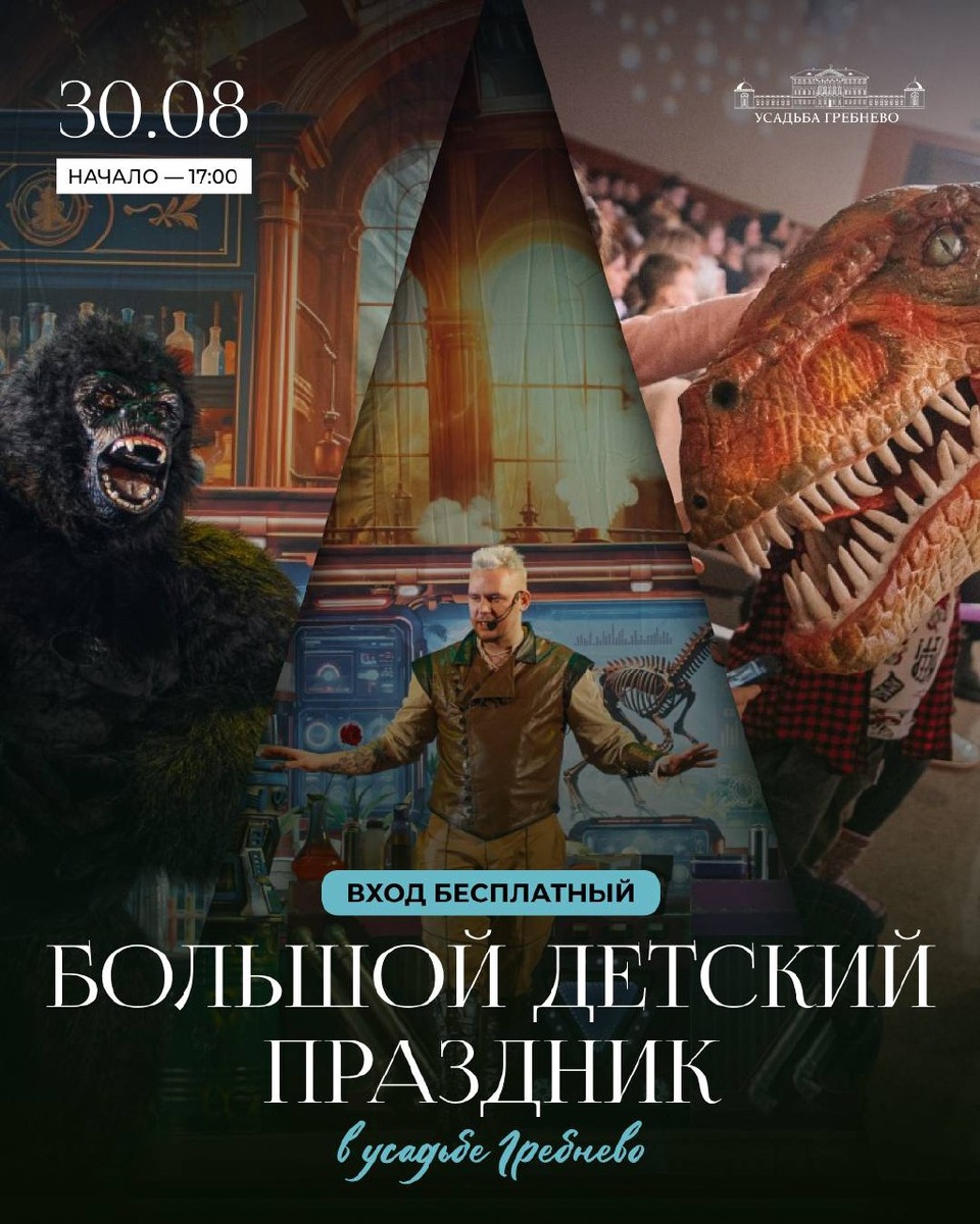 Уже завтра, 30 августа в 17:00, в усадьбе Гребнево состоится большой детский праздник «Тайна великих открытий: Путешествие в эпоху динозавров» ВХОД СВОБОДНЫЙ и БЕСПЛАТНЫЙ! Представьте: секретная лаборатория в глубине джунглей, учёные на грани открытия и…ожившие динозавры! Профессор Грюм совершил невозможное — вернул гигантов Юрского периода! Но готов ли мир к этому? Вместе с отважной гориллой Конго и роботом-помощником ему предстоит сразиться с лабораторным монстром и укротить древних ящеров. Почему это шоу стоит посетить? *️⃣Реалистичные динозавры — почти как в "Парке Юрского периода"! *️⃣Интерактивность — дети станут частью приключения. *️⃣Ростовые куклы, спецэффекты и загадки — скучно не будет. *️⃣Сафари, наука и экшен в одном флаконе. Вы готовы разгадать тайну великих открытий? Ждём вас в усадьбе Гребнево всей семьей! Дети будут в восторге! ✅ АНДРЕЙ КОВАЛЕВ | reformator.ru | oodp.ru