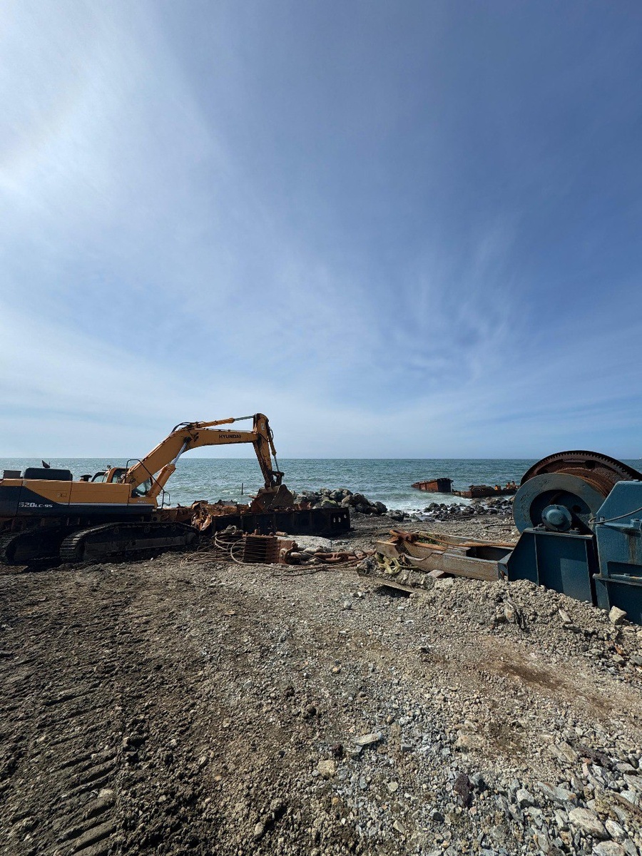 ⌛Глава регионального минтранса проверил ход работ по утилизации судна Xing Yuan в Холмске ⚓️Подрядная организация приступила к последнему этапу утилизации сухогруза, севшего на мель у городской набережной в Холмске. На данный момент полностью удалена надводная часть судна и утилизировано 1000 тонн металлолома, из акватории остается извлечь фрагмент подводной части. Работы по удалению затонувшего имущества в регионе ведутся в рамках реализации федерального проекта «Генеральная уборка», который с этого года вошел в состав президентского нацпроекта «Экологическое благополучие». На этой неделе мы проинспектировали ход работ на объекте. Остов судна, который находится под водой и за время простоя плотно осел на дно, было решено удалять по частям методом крупноблочной резки. Для этого подрядчик привлек дополнительную технику и специализированное оборудование – помощь в этом оказали крупные судоподъемные компании. Из акватории извлекли первую часть остова судна. Удалить остальные фрагменты и