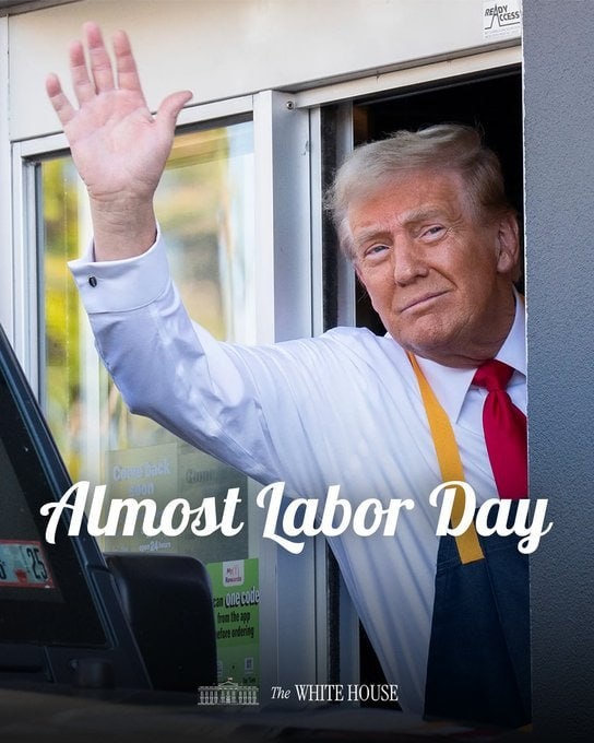 Белый дом поздравил американцев с предстоящим Днем труда, выложив фото Трампа за работой в Макдоналдс