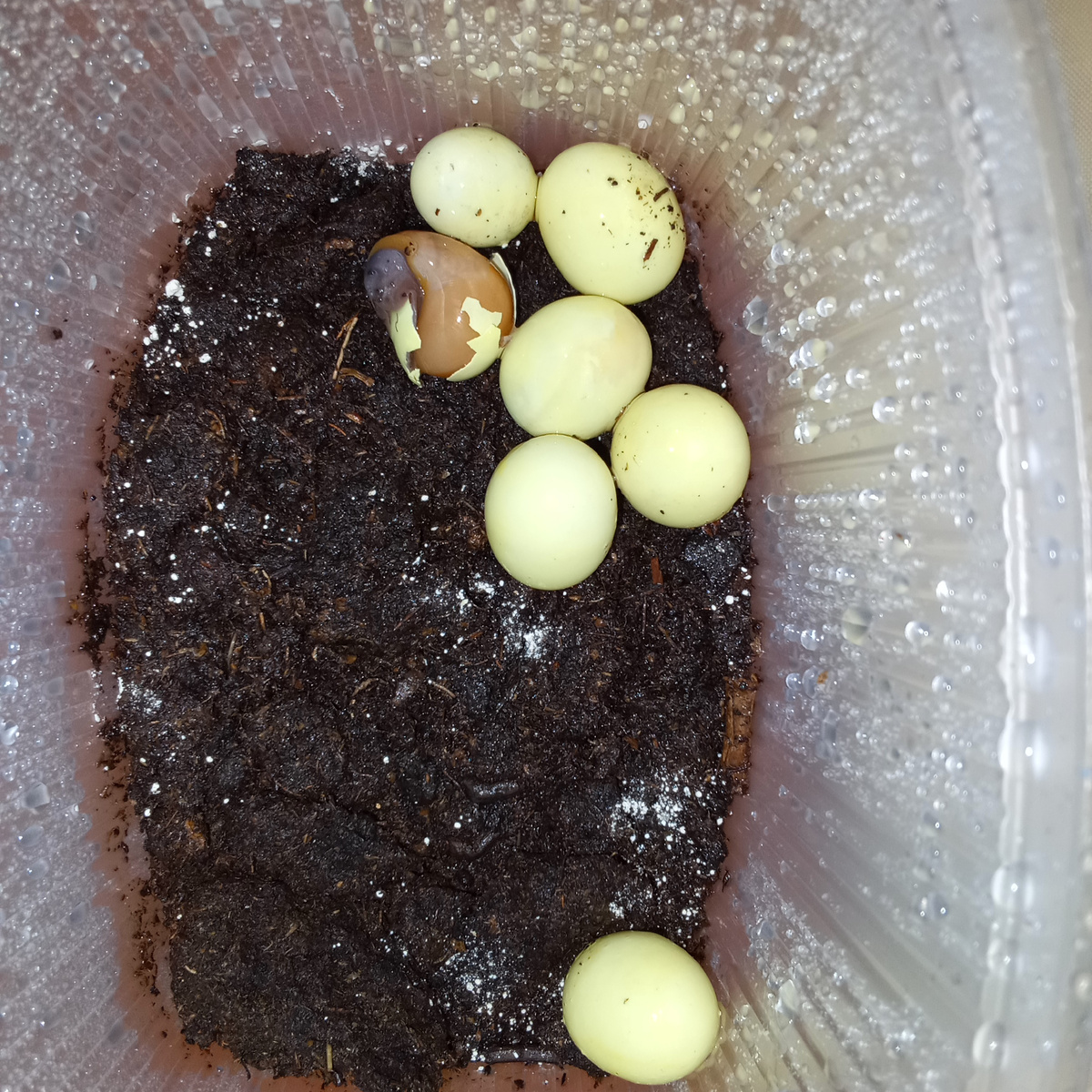 Ну вот я и дождалась деток от моих гигантов Архив XXL😀🥰🥰🥰🥰 За последнее время кладки Овумов были все пустые,не могла понять почему. Но когда снестись мои самые большие - я оставила обе кладки,я не сдалась. Посоветовалась с заводчиком у которого брала эту парочку, вымыла яйца(2 см, от 31.07.2025 ) и положила их на салфетку. Чтобы не было перепада температуры,поставила контейнер в ванную. И вот , 27 августа увидела треснутые яйцо,а там малыш😂🐌🐌🐌. Наконец-то !!!! На следующий день- второй. Теперь будем расти