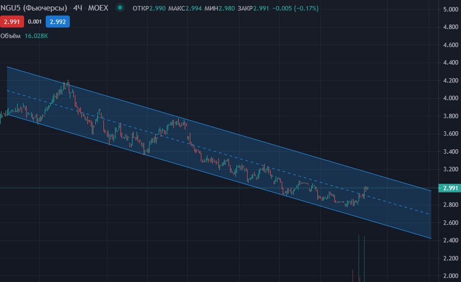 #Природный газ #NG-9.25 📉 Цена идёт в канале на понижение. ➡️ Средняя стенка канала является зеркальной, так как от неё много раз отталкивались. Сейчас по графику видно, что пробили зеркальный уровень, вероятно, движение продолжится до 3,140. 😆 3,14 (число ПИ) - Верхняя стенка канала, есть шанс от неё оттолкнуться и снова пойти на понижением, если пробьет, то увидим повышение цены до 3 333, а дальше до 3 773, в чем я сомневаюсь. 🟢Скорее всего движение вниз будет продолжено по каналу. НЕ ИИР