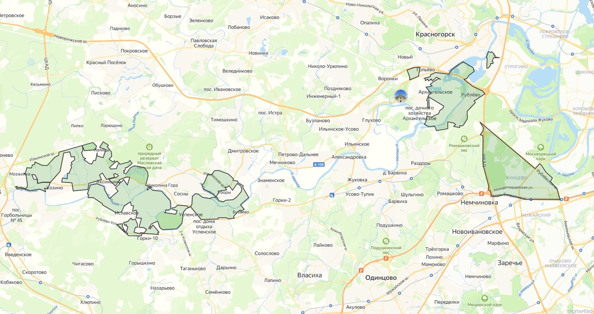 Друзья, добрый день, думаю, предпоследняя статья о замкадных районах Москвы, осталось только Новокосино, но, возможно, я что-то забыл :-) Напишите, пожалуйста, в комментах - если какой-то район замкадья упустил - допишу. Итак. Мы с Вами уже рассмотрели Куркино, Молжаниновский, Бутово, Митино, Солнцево, Ново-Переделкино, Внуково, Некрасовка, Троицк, Коммунарка, Косино-Ухтомский, Жулебино, Восточный, Северный и Сколково и Щербинку. Сегодня - Кунцево. Удивительно, да? Кунцево же внутри МКАД? Да, всё так, но есть и части за МКАД, по площади больше традиционного Кунцево То, что сразу за МКАД, к северо-западу от Кунцево - посёлки Рублёво и Рублёво-Архангельское, то, что дальше к западу, доходящее практически до Звенигорода - поселок Конезавода и несколько поселков поменьше. Обратите внимание, что это престижный запад Москвы (ну ок, пусть будет, западного замкадья), с московской регистрацией, с уже существующей застройкой, представленной преимущественно коттеджными посёлками бизнес и премиум-