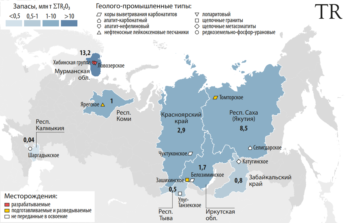 Формирование кластера в Ангаро-Енисейском макрорегионе обсудили на очередном заседании временной межведомственной рабочей группы при аппарате Совета Безопасности Российской Федерации по сопровождению реализации проектов в сфере глубокой переработки сырья в Сибирском федеральном округе. Государственным балансом запасов полезных ископаемых России учтено 18 коренных месторождений с запасами РЗМ, а также 2 техногенных. Иллюстрация: Российский государственный геологический фонд. Поставленная Президентом задача по сборке новых отраслей на основе критических материалов неразрывно связана с вовлечением в оборот ресурсов и месторождений Сибири, сказал секретарь Совета Безопасности России Сергей Шойгу. «Это беспрецедентный сырьевой потенциал для создания новой высокотехнологичной индустрии России. На территории СФО производится 90% первичного алюминия, 80% меди, 95% никеля, вырабатывается более 20% электроэнергии, находится более 50% запасов редкоземельных металлов». В ходе заседания была предст