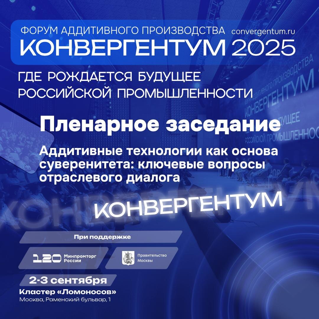 Аддитивные технологии как основа суверенитета: ключевые вопросы отраслевого диалога 2 сентября в кластере «Ломоносов» в рамках Форума «Конвергентум 2025» состоится пленарное заседание, которое соберет на одной площадке главных драйверов развития аддитивных технологий в России. Тема для дискуссии более чем актуальна: «Аддитивные технологии как основа технологического суверенитета: стратегия развития, масштабирование и системная интеграция в промышленность». В уникальном формате живого диалога без презентаций представители государства, науки и промышленности обсудят конкретные шаги по переходу от экспериментов к серийному внедрению АТ. В фокусе внимания спикеров: ✅ Обновление стратегии развития АТ до 2030 года ✅ Наука для промышленности ✅ Стандарты для БПЛА ✅ Барьеры внедрения ✅ Опыт интеграции ✅ Меры поддержки ✅ Отраслевой опыт ✅ Единые правила игры Модератором диалога выступит Артем Соломников, генеральный директор компании «ИМПРИНТА», руководитель организационного комитета форума