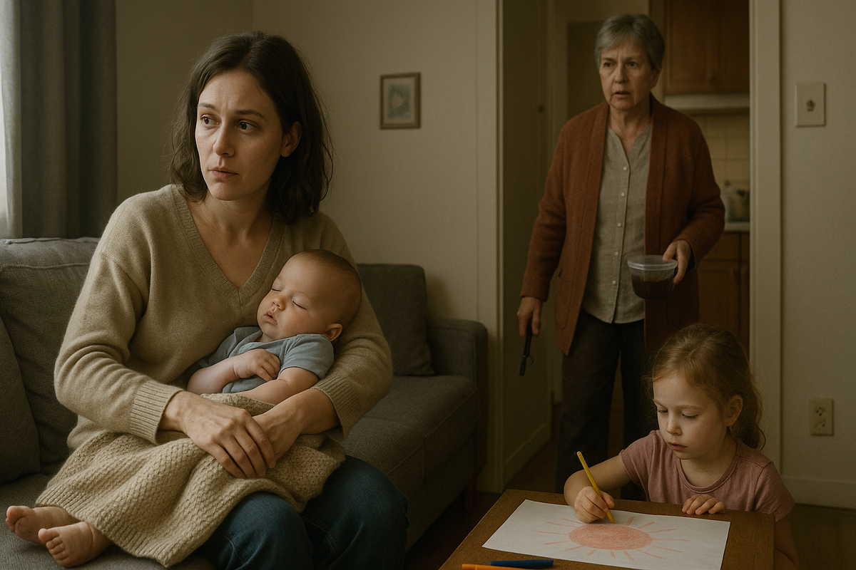 Мы живём в двухкомнатной квартире. Сергей в эти недели почти не ночует дома — смены, выезды, какая-то проверка. Я после роддома ещё толком не встала в ритм: ночи длинные, днём голова ватная. Тамара Павловна живёт в соседнем доме и появляется «помочь». Вначале помощь была как праздник: борщ, коляска, пелёнки поглажены. Потом у помощи выросли зубы.