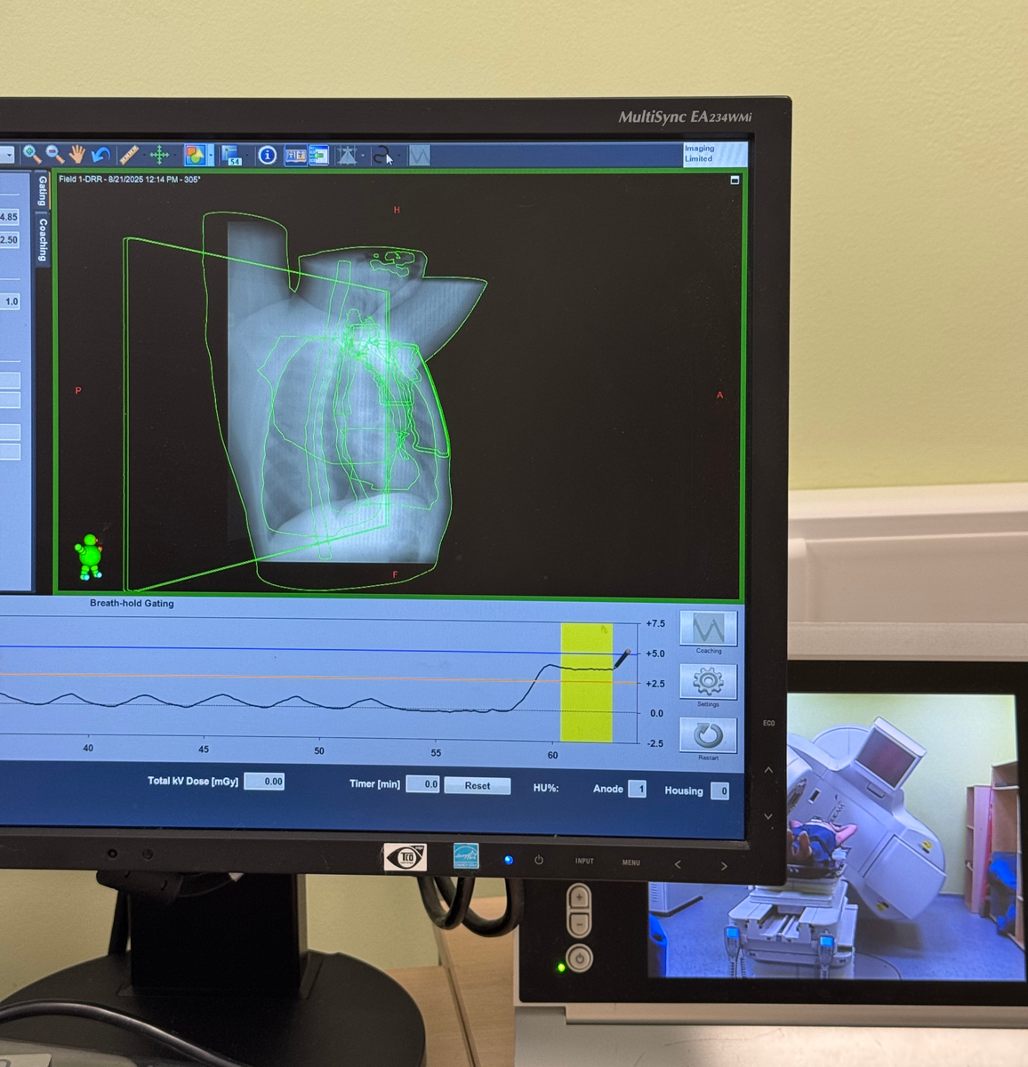 С начала 2025 года в Воронежском областном клиническом онкологическом центре (БУЗ ВО «ВОНКОЦ») доступна передовая технология лучевой терапии для пациенток с раком молочной железы. Речь идет о методике Respiratory Gating (дословно – «дыхательная синхронизация»). Суть инновации заключается в том, что аппарат «подстраивается» под дыхание пациентки. Специальный датчик в реальном времени отслеживает ее дыхательный цикл. Облучение происходит только в строго определенную фазу – на глубоком вдохе. В этот момент грудная клетка расширяется, и сердце отдаляется от области воздействия, что создает естественный защитный барьер. Как только пациентка выдыхает, подача излучения автоматически прекращается. Ключевые преимущества технологии: Как поясняют специалисты онкоцентра, методика применяется после тщательного отбора пациенток, в основном при левостороннем раке и когда опухоль расположена близко к сердцу. Хотя современное планирование лучевой терапии и без того позволяет минимизировать риски, систе