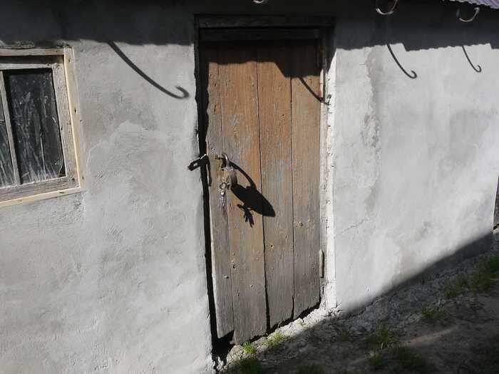 Дальше переходим к стене сарая. Снимаем старую дверь, демонтируем коробку.