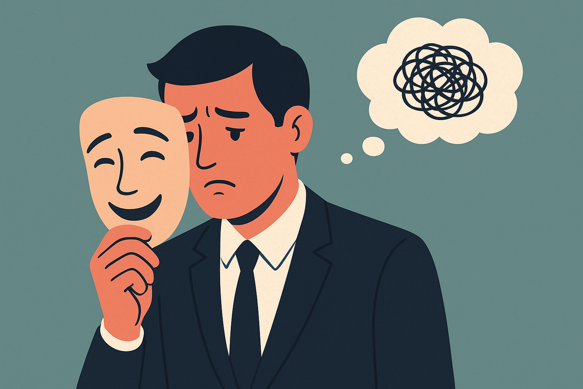 Иногда кажется, что я смотрю на мир не своими глазами, а сквозь щели чужой маски. Внутри — уверенность: знаний у меня мало, навыки сырые, образование усвоено не до конца. Вокруг — сплошь безупречные профессионалы. Настоящие мастера, которые всегда выбирают лучший путь, не ошибаются и посвящают себя работе целиком. Я сам воздвиг их на пьедестал и решил: заниматься делом можно только идеально. Если нет — значит, лучше никак. Каждая встреча с коллегами превращается в испытание. В такие моменты я почти физически ощущаю, что меня "видят насквозь": мои пробелы, мою неуверенность, мой стыд. И до сих пор загадка, почему меня не выгнали с позором и не выдали клеймо самозванца. Постоянное ощущение, будто я под микроскопом, делает невыносимой любую необходимость заявить о себе. Даже мысль об этом запускает внутреннюю цензуру: «Ты ещё не готов. Ты не достоин быть видимым». И если всё же приходится говорить или показывать что-то публично, это требует колоссальных усилий — ведь я борюсь не только