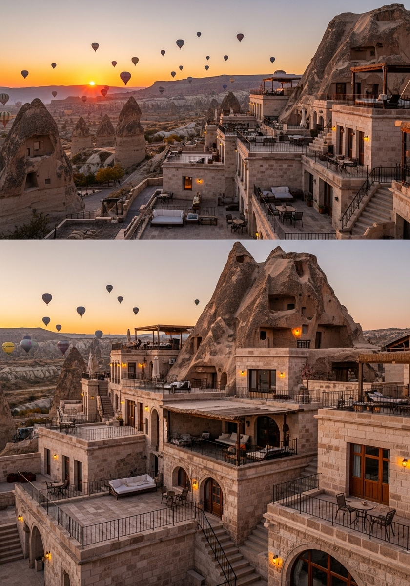 - Где найти лучшие отели Каппадокии с видом на воздушные шары? Sultan Cave Suites имеет знаменитую террасу для наблюдения за шарами, а Kelebek Special Cave Hotel и Cappadocia Cave Suites также предлагают отличные точки обзора утренних полетов.