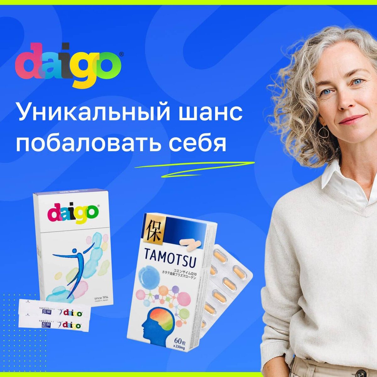 Акция: День Долголетия! Скидка -15% только 29 августа! Празднуйте заботу о здоровье вместе с «Дайго»! В этот особенный день мы дарим вам скидку 15% на органический продукт, который заботится о вашем кишечнике и иммунитете. «Дайго» — это натуральный продукт, содержащий экстракт лактобактерий и бактериальную клеточную субстанцию. Он восстанавливает защитную микрофлору кишечника, способствует росту полезных бактерий и уничтожению вредных, помогая поддерживать баланс и здоровье организма. Не упустите шанс улучшить своё здоровье с выгодой! Акция действует только 29 августа - подробности тут https://www.belle-allure.ru/store/daigo/ Закажите «Дайго» сегодня и получите скидку!