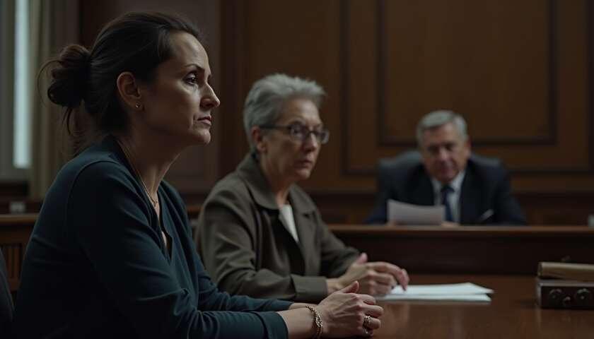 Зал был невелик. Высокие окна, тусклая люстра, длинные скамьи — всё как в больнице, только вместо запаха карболки — запах бумаги. На первом ряду — женщина из опеки, я знала её лицо: идеальная прическа, аккуратный блокнот с угольно-черными графами. Рядом — мужчина в синем костюме, адвокат мужа; он перелистывал папку с желтыми закладками, не глядя ни на кого, и от этого становился похож на хирурга, который ещё не решил, что отрезать.
