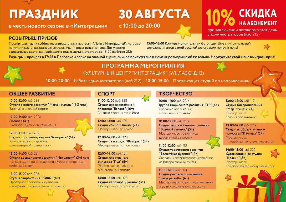 ❣️Программа праздника в честь нового сезона в «Интеграции