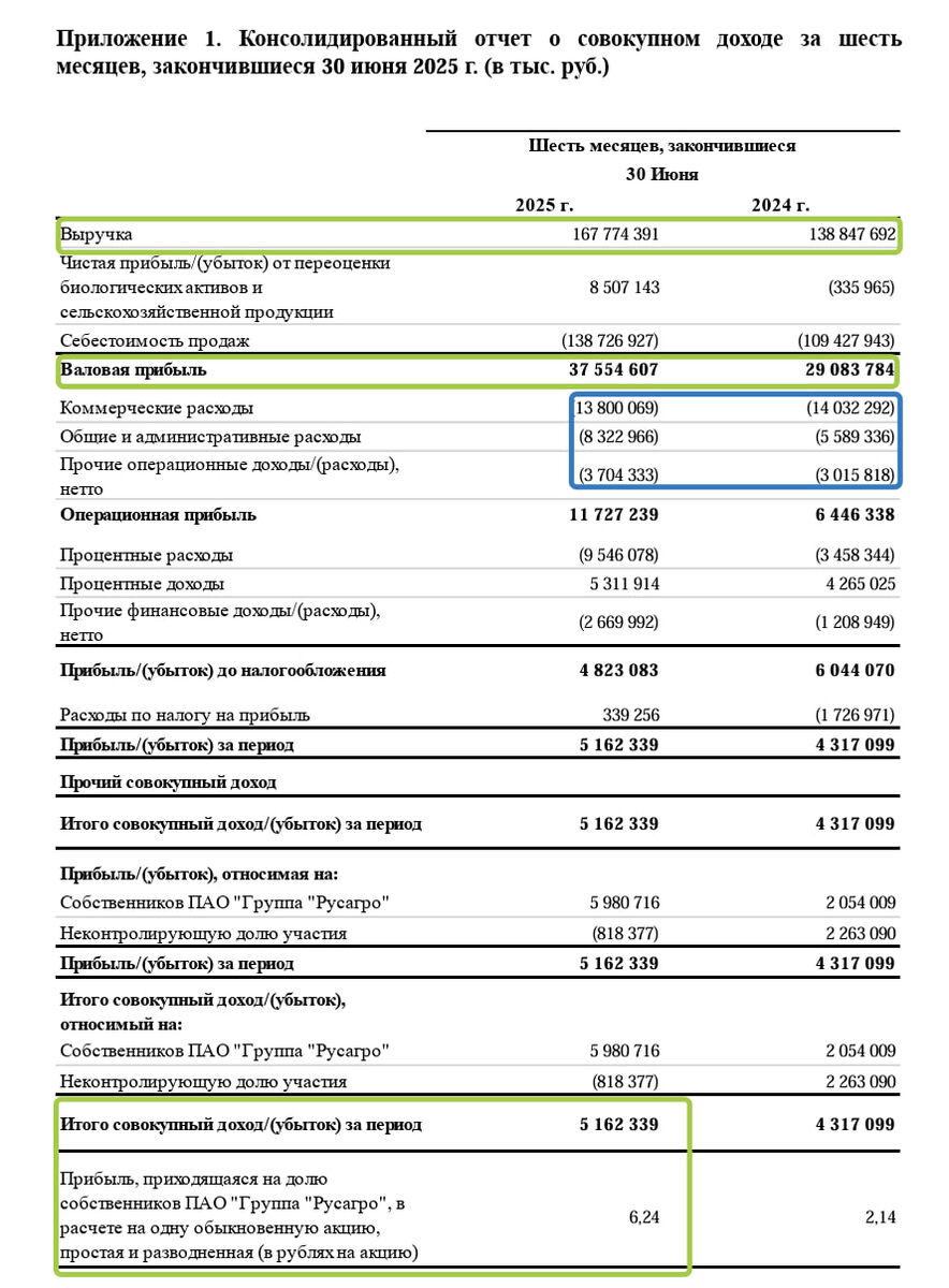 +29,6% приносит сейчас позиция Клуба по #RAGR Русагро, которую мы ведем строго по тренду с целями на десятки процентов прибыли, это как обычно ↗️ Нас не интересует малая прибыль. Вышел очень достойный отчет в рамках ожиданий. Все очень ровно и правильно - выручка увеличилась, расходы остались практически на том же уровне, операционная прибыль удвоилась, чистая прибыль +20% за полугодие. При этом вырос чистый долг, а коэффициент Чистый долг/Скор. EBITDA (LTM) 1,92 на грани общепринятой нормальности. Цена акций падала пополам из-за кошмаринга мажоритария, консолидировалась и отросла уже, цена уже стала адекватная, P/E около 10 уже, но есть вариант дотянуть позицию по тренду в зону 150-170 с ограниченным риском.