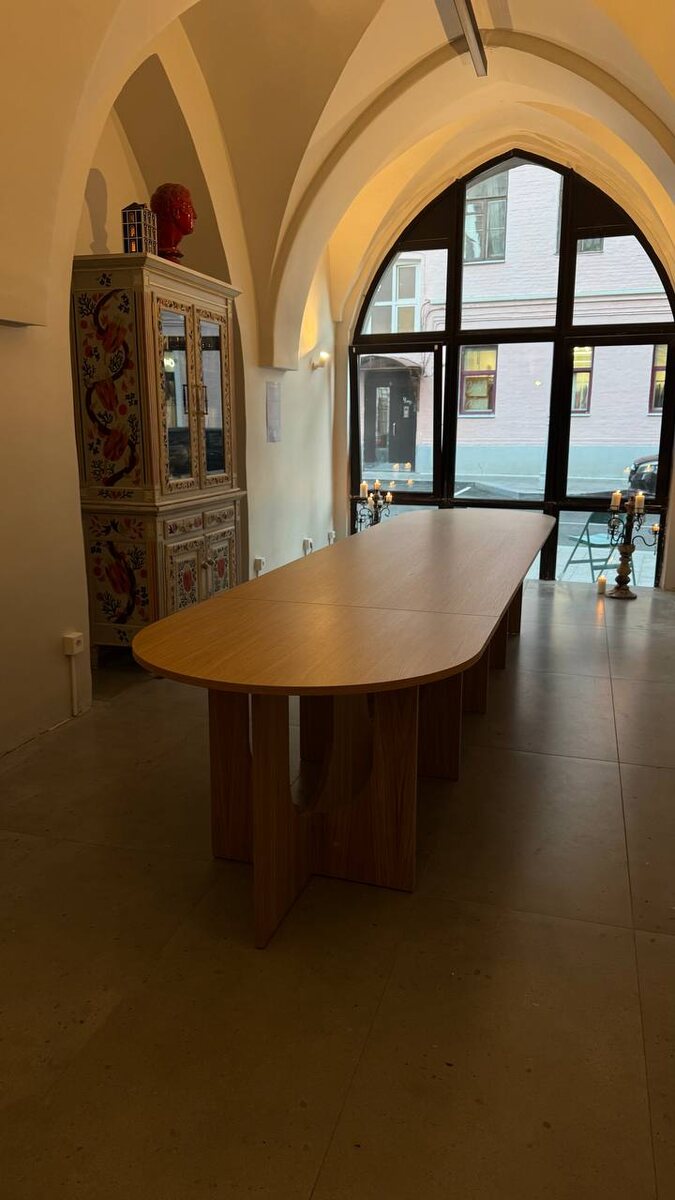 Вчера отвезли и собрали большой стол в новом офисе журнала Seasons 🧡 За ним будет собираться редакция и проводиться мастер-классы. Как он был разработан: Задача была сделать стол 4,2*1 метр, чтобы он делился на сегменты и его можно было использовать для разных сценариев работы и мероприятий. Взяли за основу наш стандартный стол Arch oval🍽🍽. Выбрали именно эту модель для того, чтобы поддержать стиль и настроение пространства, где он будет установлен, с его арочными сводами и говорящим названием «Замок». Разбили его на три сегмента. Из которых можно как собрать единый длинный стол, так из двух половинок собрать овальный поменьше и отдельно использовать прямоугольную часть. Суть этой идеи отразили на схеме. Столешницу и опоры сделали из материала в два раза тоньше, чем на стандартном столе, чтобы легче можно было передвигать части этого гиганта. Позже сделаем более качественные кадры с ним, а пока делимся свежей фотографией сразу после сборки. Мы довольны результатом и, пройдя